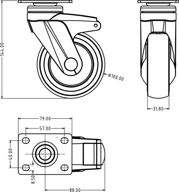 57系列腳輪主架和輪芯采用高強(qiáng)度聚酰胺制材質(zhì),美觀,防腐,防生銹,轉(zhuǎn)動(dòng)部分均采用精密滾珠軸承結(jié)構(gòu)、轉(zhuǎn)動(dòng)靈活靜音,承載性能好,保證了腳輪的使用壽命,輪胎面采用超靜音TPE材質(zhì)注塑成型,耐磨、耐沖擊、承載大整體靜音耐磨、轉(zhuǎn)動(dòng)輕巧靈活,彈性好